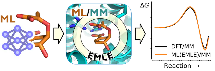 To simulate enzyme reactions, multiscale quantum mechanics/molecular mechanics (QM/MM) approaches are well established and popular. However, accurately and efficiently estimating enzyme activity is a challenge, because in general, precise methods are too computationally expensive. Here, we demonstrate that enzyme catalysis can be captured by coupling efficient, reactive machine-learned potentials (MLPs) trained on gas phase data to the wider enzyme environment using electrostatic machine learning embedding (EMLE). The EMLE scheme is first applied to the natural Diels–Alderase AbyU, showing that it correctly differentiates the catalytic action on different enzyme–substrate conformations. Then, we show that training a reaction-specific EMLE model allows us to accurately capture the enzyme catalytic effects of the conversion of chorismate to prephenate, a reaction with a highly polarizable and charged transition state. In both cases, in contrast to mechanical embedding approaches, the EMLE scheme allows accurate and efficient predictions of enzyme catalysis, agreeing with high-level QM/MM reference calculations. This approach facilitates the use of gas phase-trained MLPs in MLP/molecular mechanics (ML/MM) simulations and should thus be highly beneficial for computational activity screening of enzyme biocatalysts.